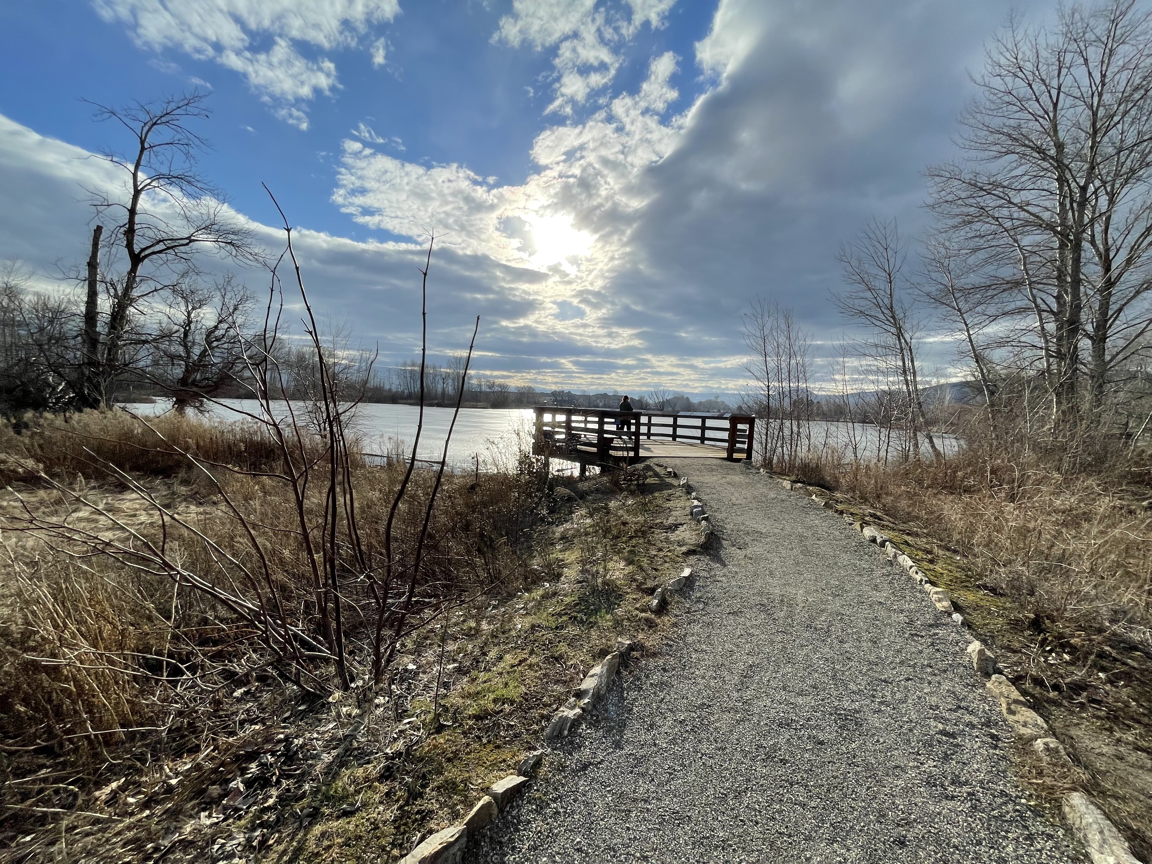 We walked the 1 km track around Munson Pond twice. The first time, we popped in our earbuds and listened to an mp4 file of the somewhat distant South Fork Snoqualmie river during ice melt recorded “on the hottest day in the Pacific Northwest in 1000 years” in June 2021. The second time, we listened to the local sounds of pond, the birds, the rustle in the grass. We walked alone, together.