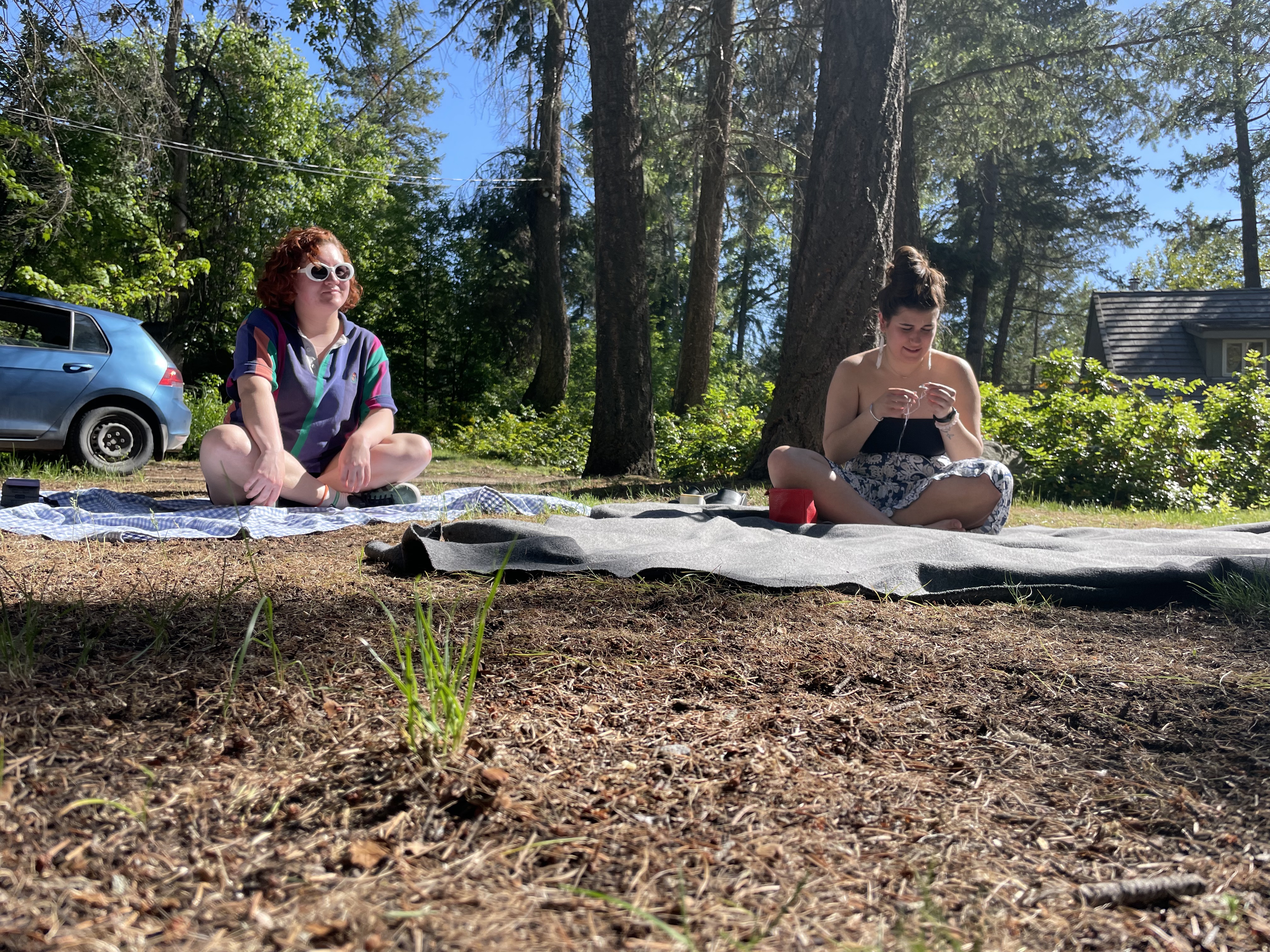 On a Friday afternoon, we spent thirty quiet minutes resting in the FEELed yard under the warm sun and bright green leaves. With a gentle invitation to daydream, we listened to the sounds of Woodhaven – a rushing creek, squirrel squeaks, and bird chirps – and drifted into rest. For some, this meant a midafternoon nap laying on the grass, while others spent this time watching clouds drift by and leaves rustle above. Afterward, we reconvened to reflect on our experiences of resting together and discuss the emerging theories of restful resistance.