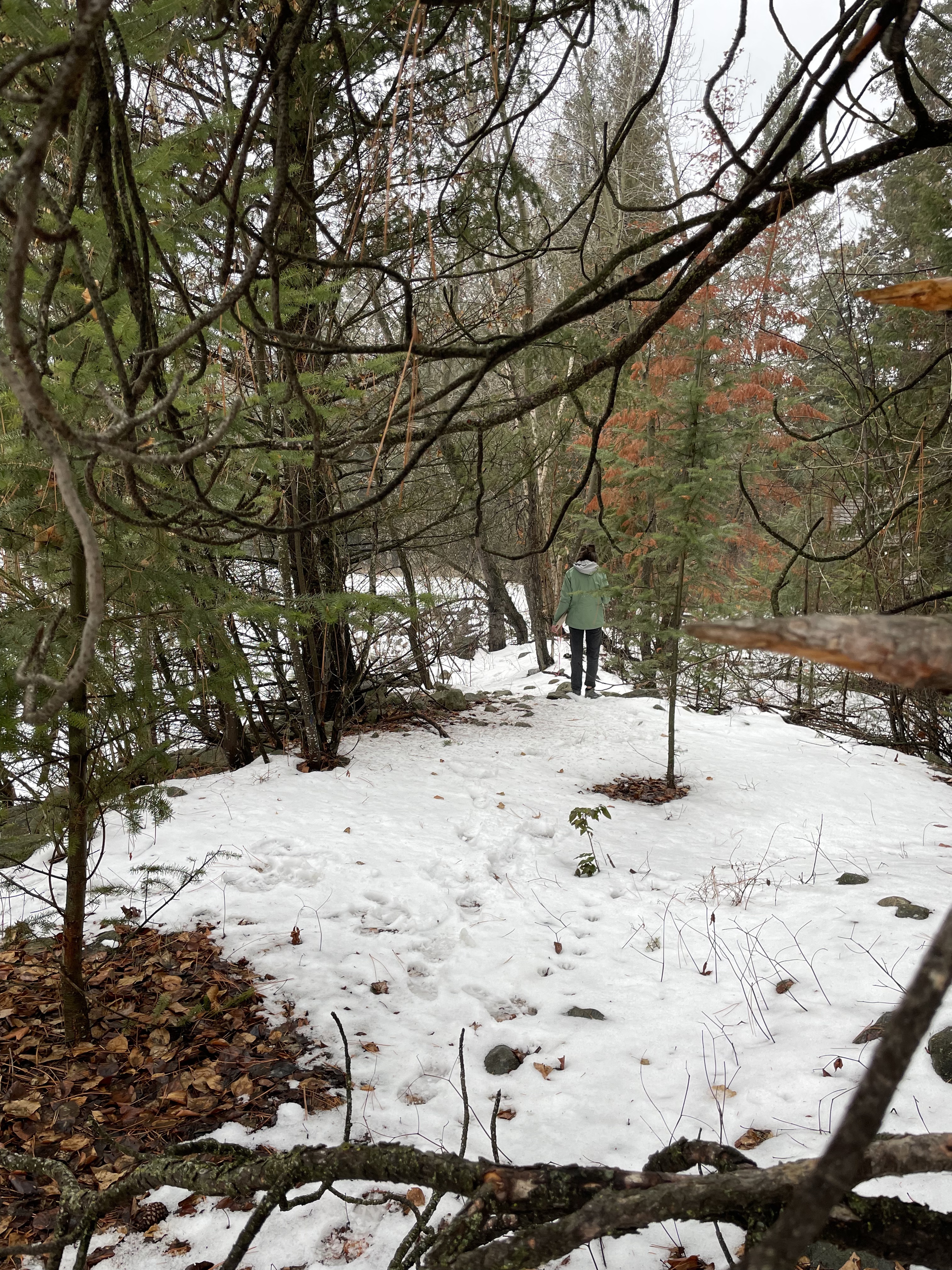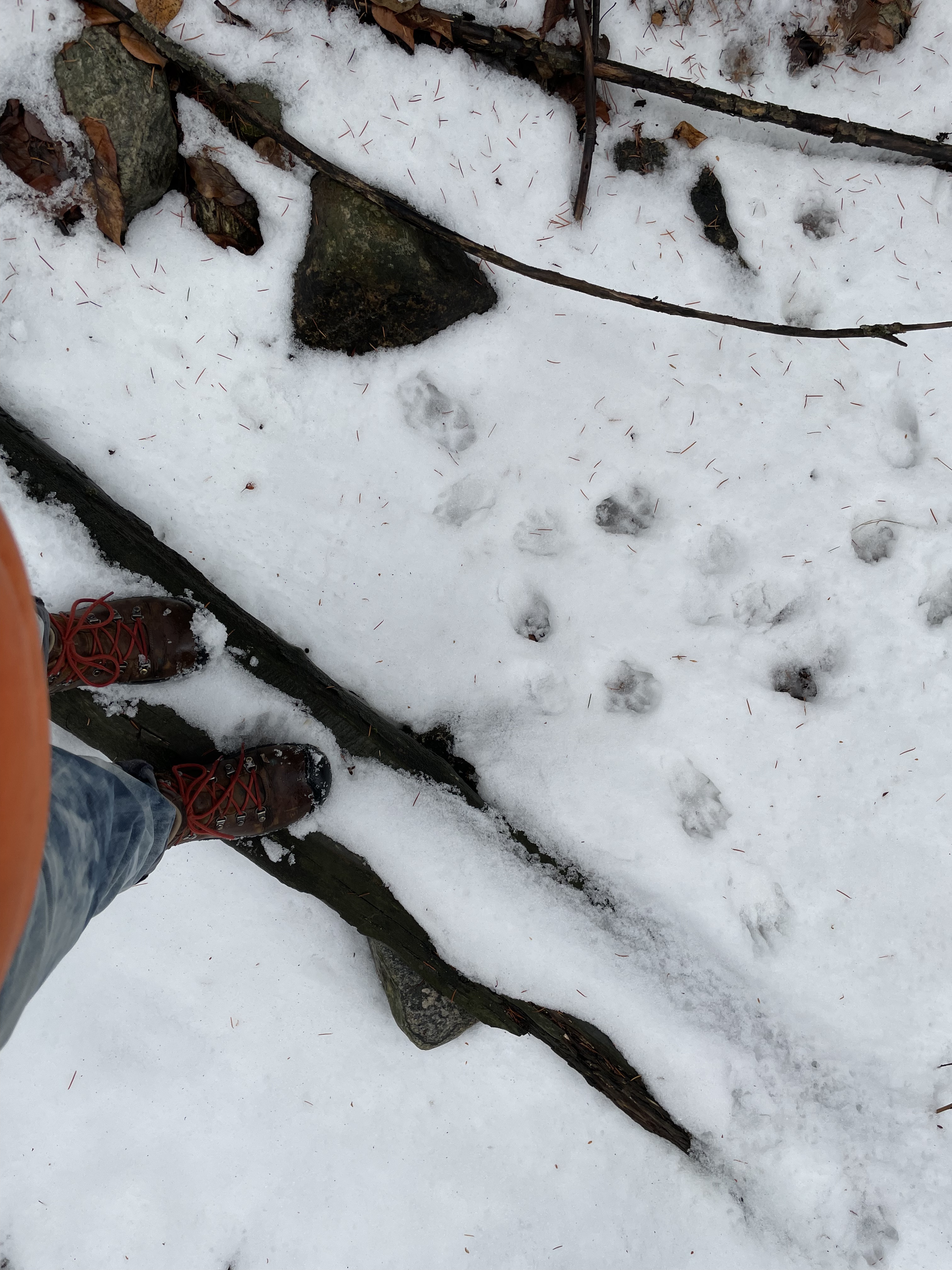 We set out on our own to find out more about how our bodies are (or aren’t) held by this place. Fresh snow meant that there were traces of other bodies who are also held by this place. (Hopeful lynx tracks were in fact raccoon…). We wondered: is this place a wilderness, a forest, something called “nature”? If not, does that mean it should be any less cared for? How does the idea of disturbance change how think about places, access and inclusion? How does our disturbance affect a place (and its own needs and desires)? Which bodies are considered “disturbances,” and under what circumstances?