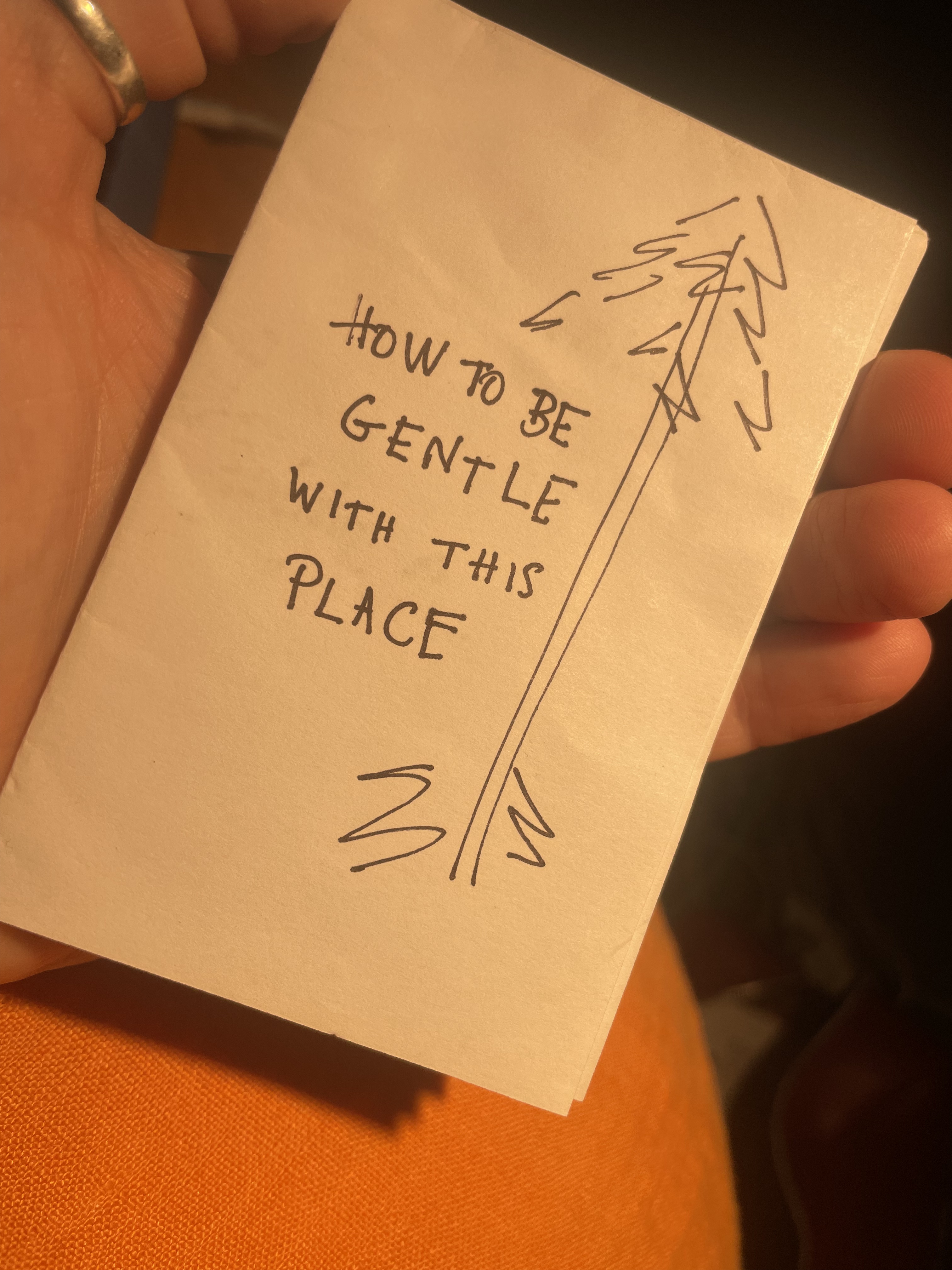 These insights are mostly emerging through our practice-led, exploratory, site-specific and arts-focused methods. We resist “applying a theory.” We resist the easy pull to defined-in-advance outputs. We are (trying out) taking our time. We digress. We make space to see what arises when we ask difficult questions, and implicate ourselves. (Note-to-reader: this is never easy in the context of institutional space-time-expectation. Part of our experiment is just committing to this approach.)