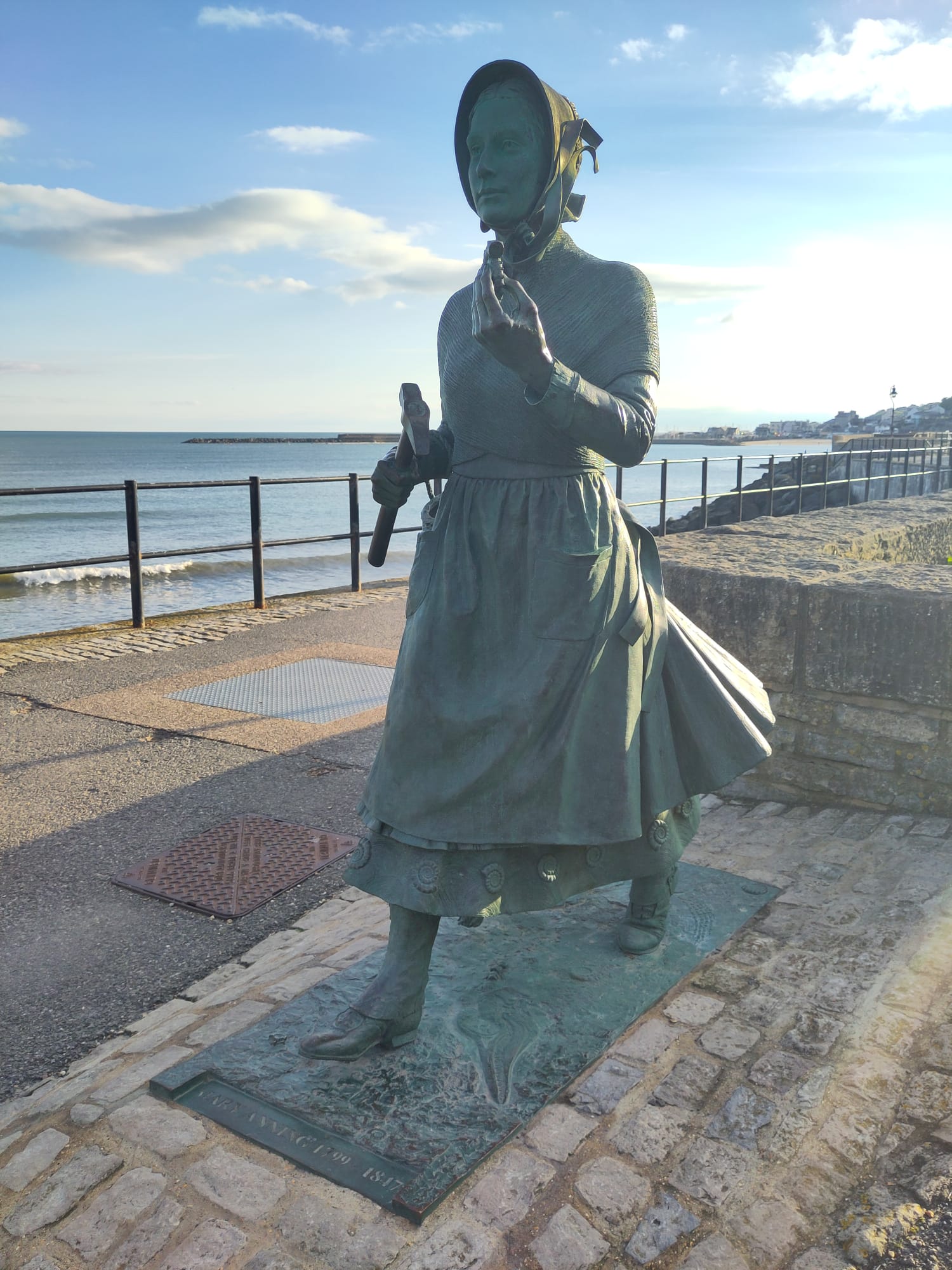 Lyme Regis is the birthplace of Mary Anning (1799- 1847), a pioneer paleontologist and the so-called “unsung hero of fossil discovery”. Sidelined during her lifetime by her male scientific peers, Mary Anning was honored on what would have been her 222nd birthday with a statue in her hometown following the campaign of then 11 year old Evie Swire and her mother, Anya Pearson. They wanted to ensure Mary would be remembered and to put her back into the landscape she belongs to.