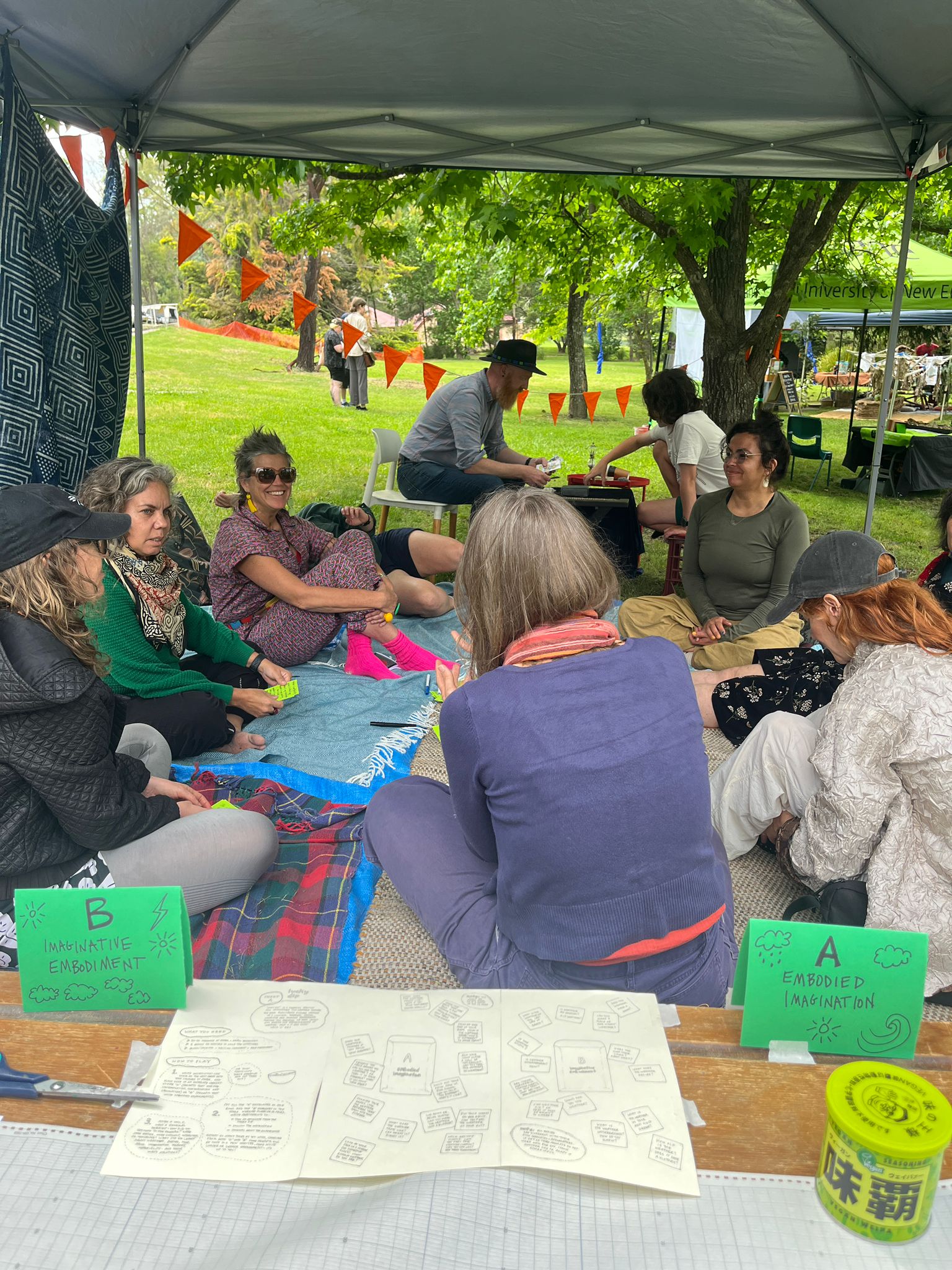 In response, the “Theory of (Climate) Change <-> Practice of (Climate) Change” retreat emerged. It included the gathering of a handful of academics, artists and activists, and our participation in a regional festival and a local art exhibit, visits on Country, a visit to a community garden, a community film screening, as well as cooking, eating, making art, writing, an open mic, and talking, walking, sitting, and talking, planning, talking and thinking, and processing, and talking.