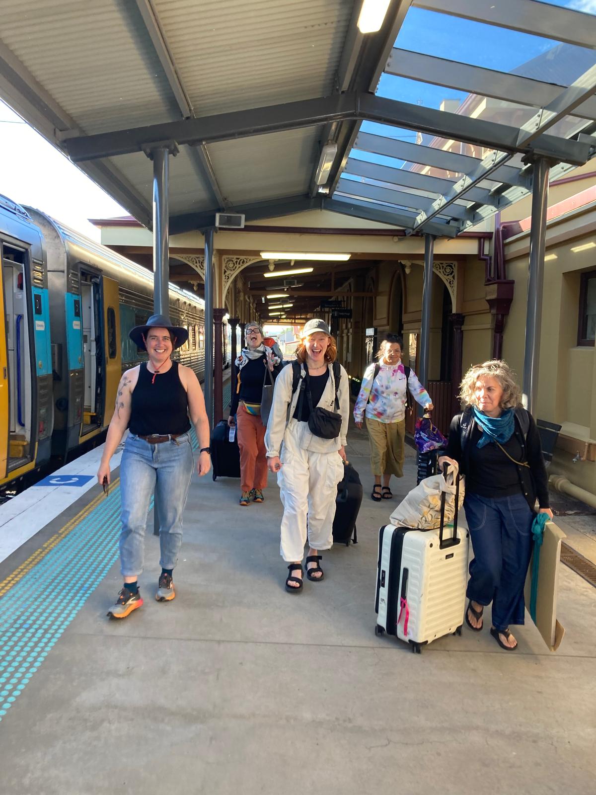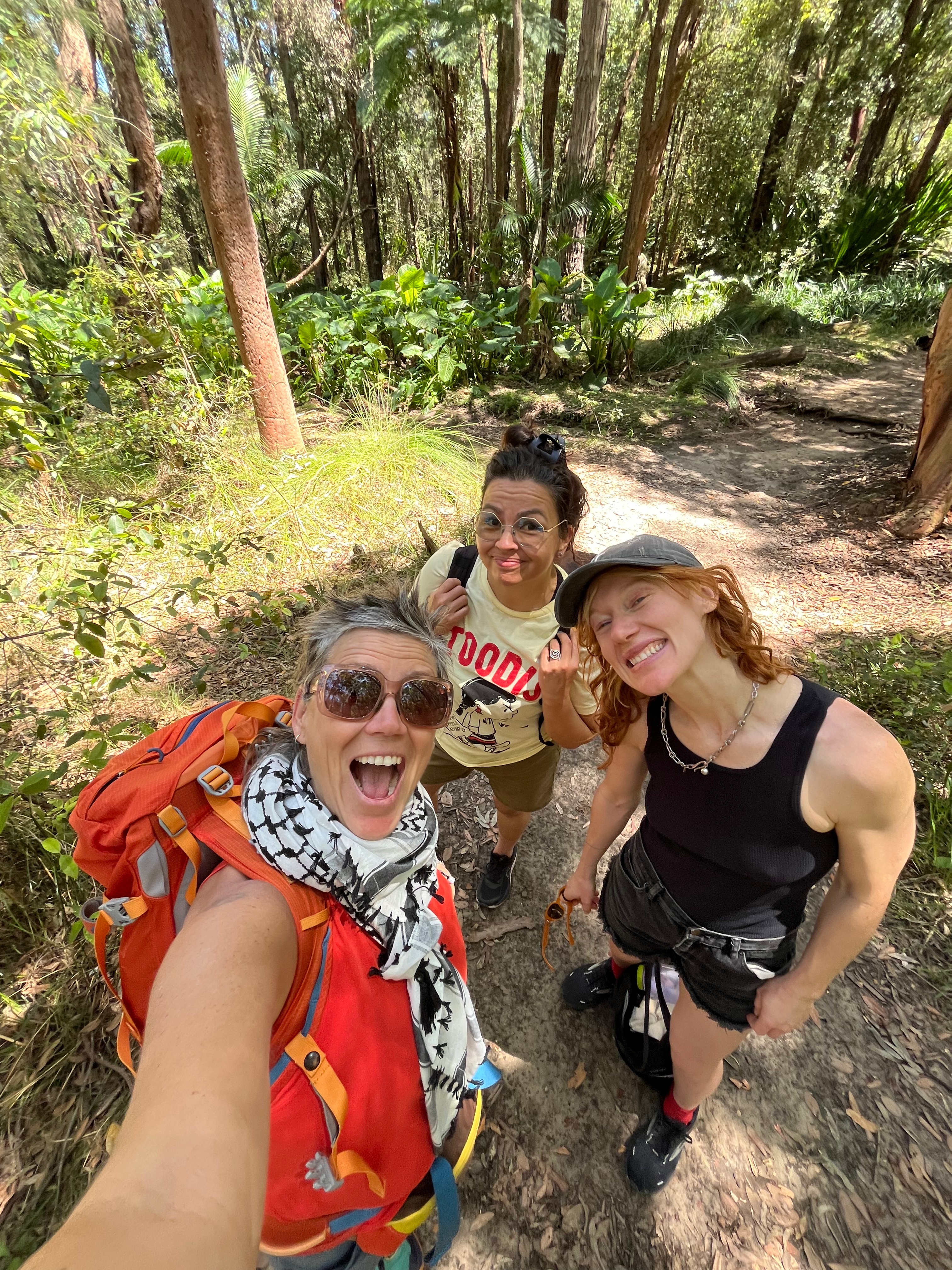 Carrie, Nina and Astrida acclimatizing after their long haul from Canada – including a *spontaneous and amazing* chance encounter with Aunty Rhonda Dixon Grovenor (our special guest at FEELers Camp in June) at the Coogee Beach bus stop!