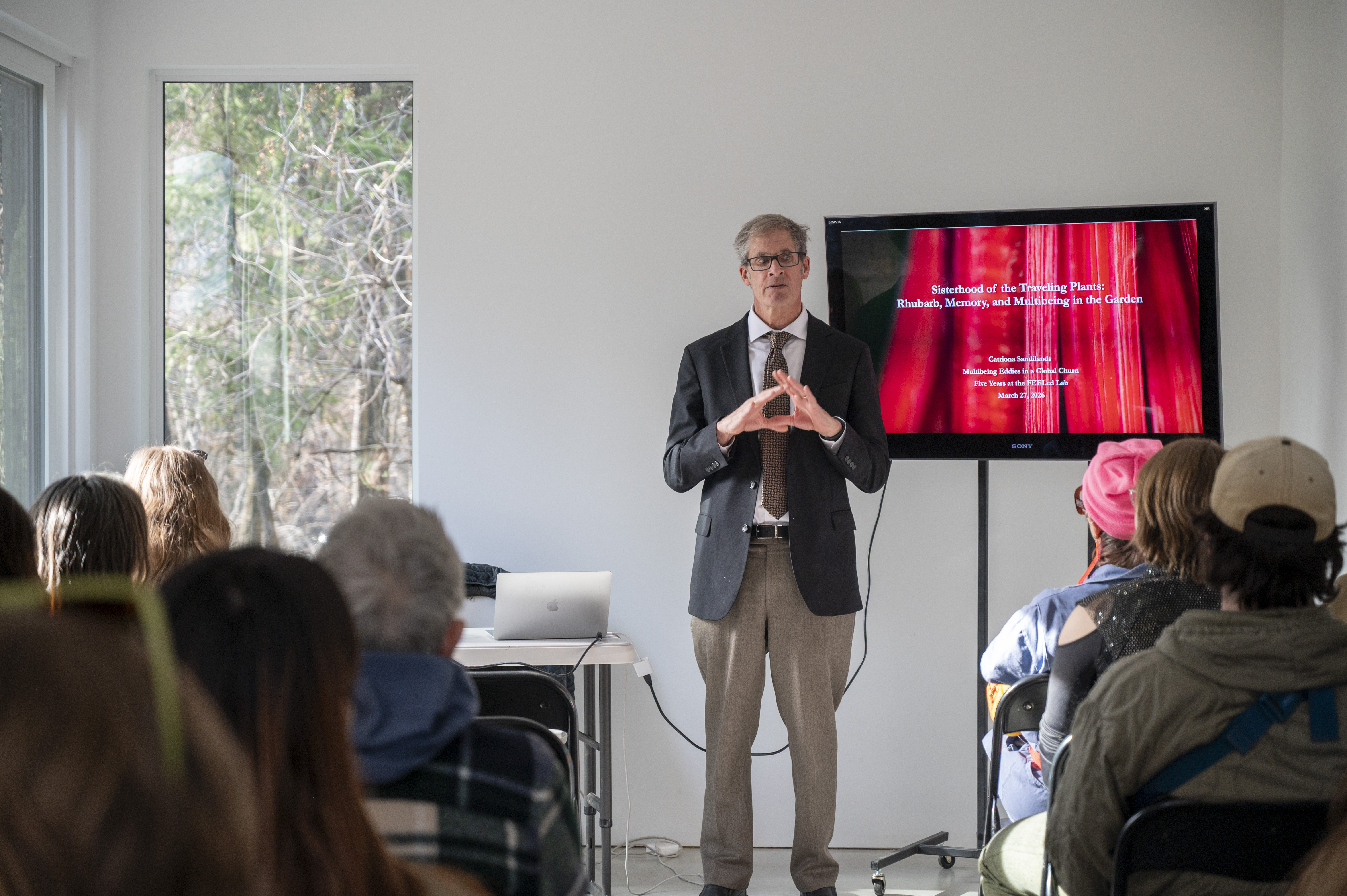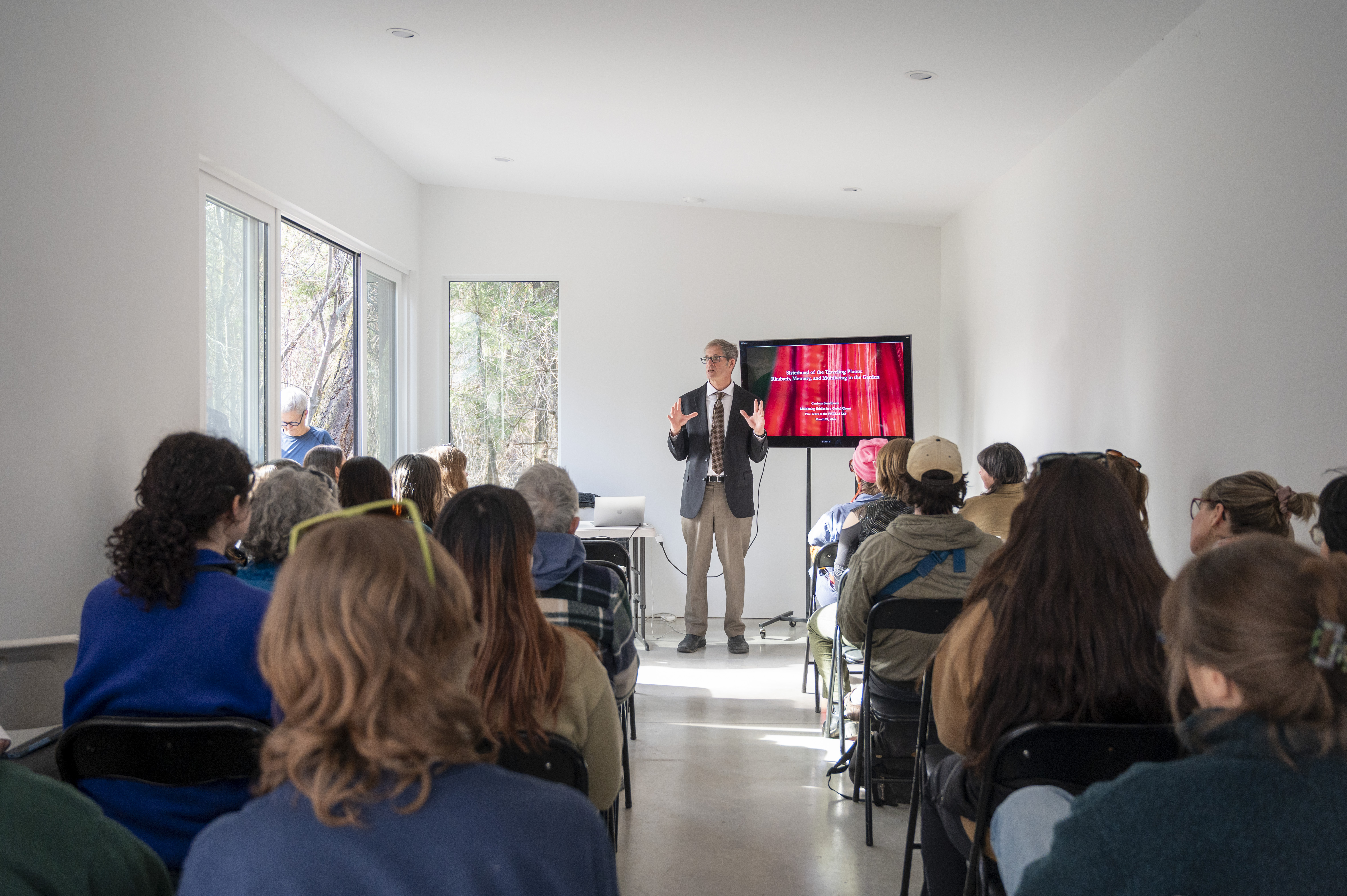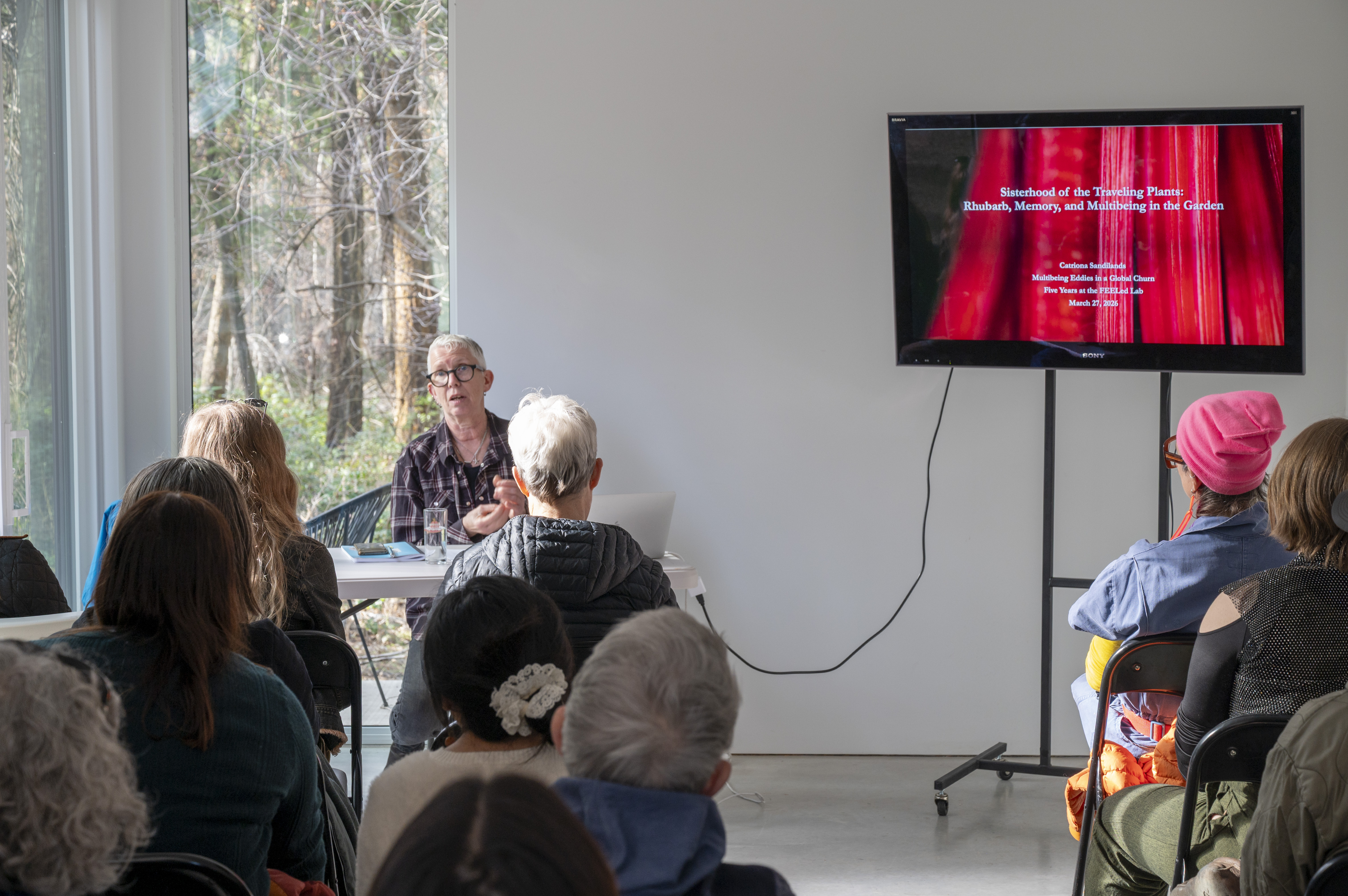 Both talks took us on unexpected global windy journeys. Cate continued our gardening/ hands in the dirt theme with her talk about the origins, entanglements and queer ecology of rhubarb. Sue moved not only our minds but also our bodies by evoking the journeys of plankton across our ocean and invited us to drift throughout the talk.